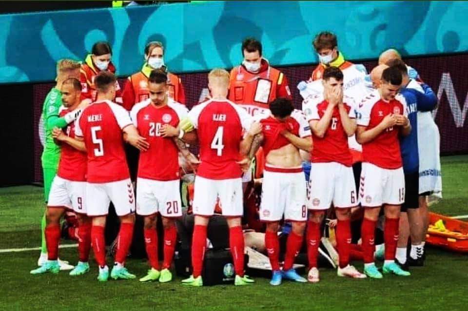 Në momentin e parë kapiteni danez Simon Kjaer thirri ekipin të formonte një mur njerëzor për të mos lejuar që kamera të filmonte shokun e skuadrës në kohën që ai po luftonte për jetën.
