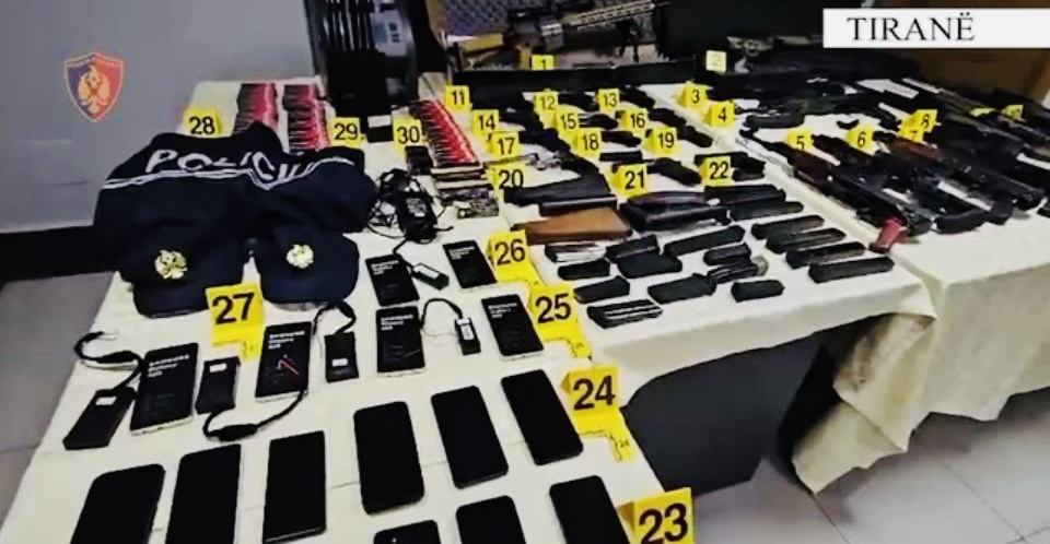 Policia ka sekuestruar 23 armë zjarri (5 prej tyre me snajper), 1 silenciator, 17 krehra me municion luftarak, celularë dhe pajisje për shpërthime në distancë, paisje për bllokimin e valëve, uniforma si të Policisë dhe sende të tjera të kundërligjshme.